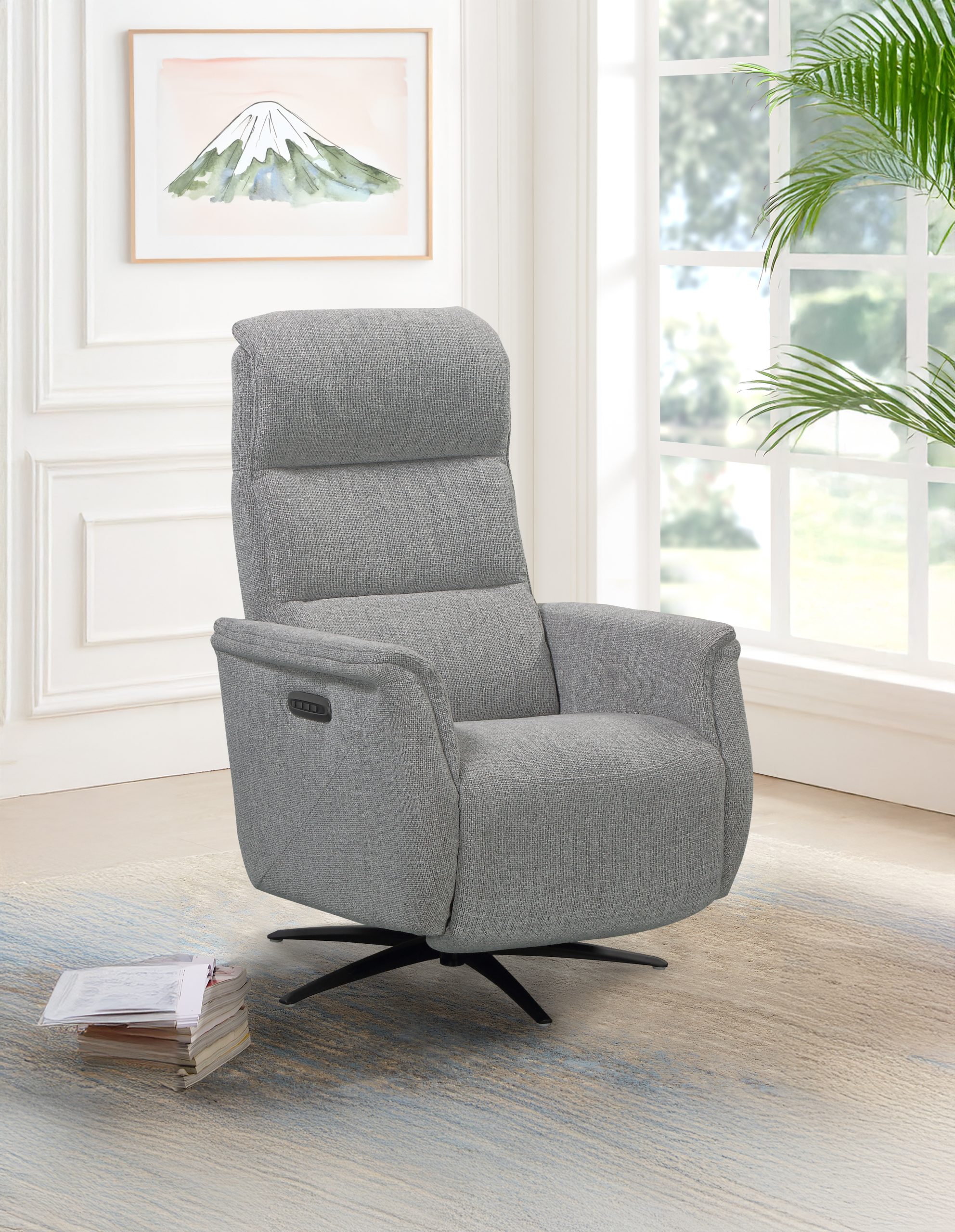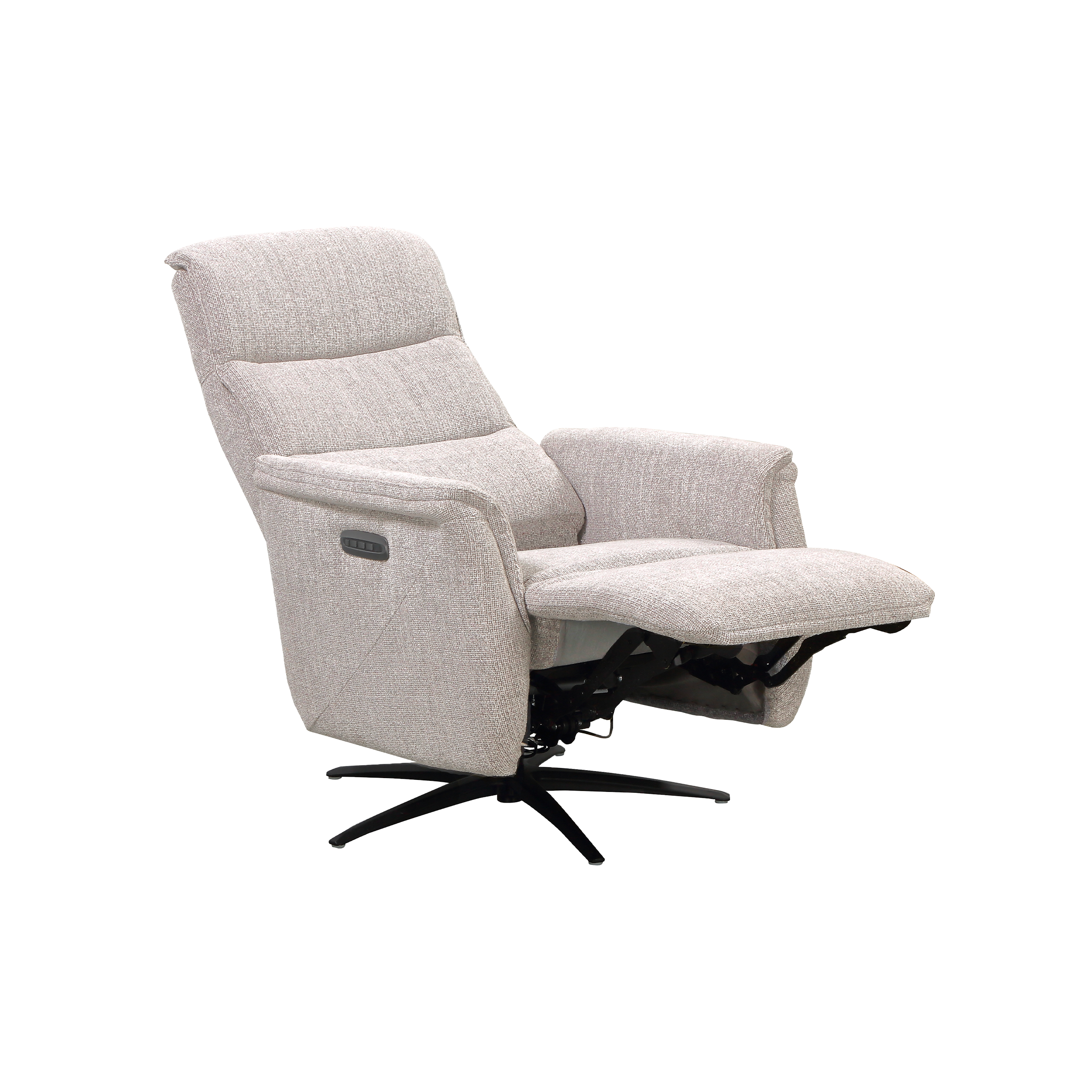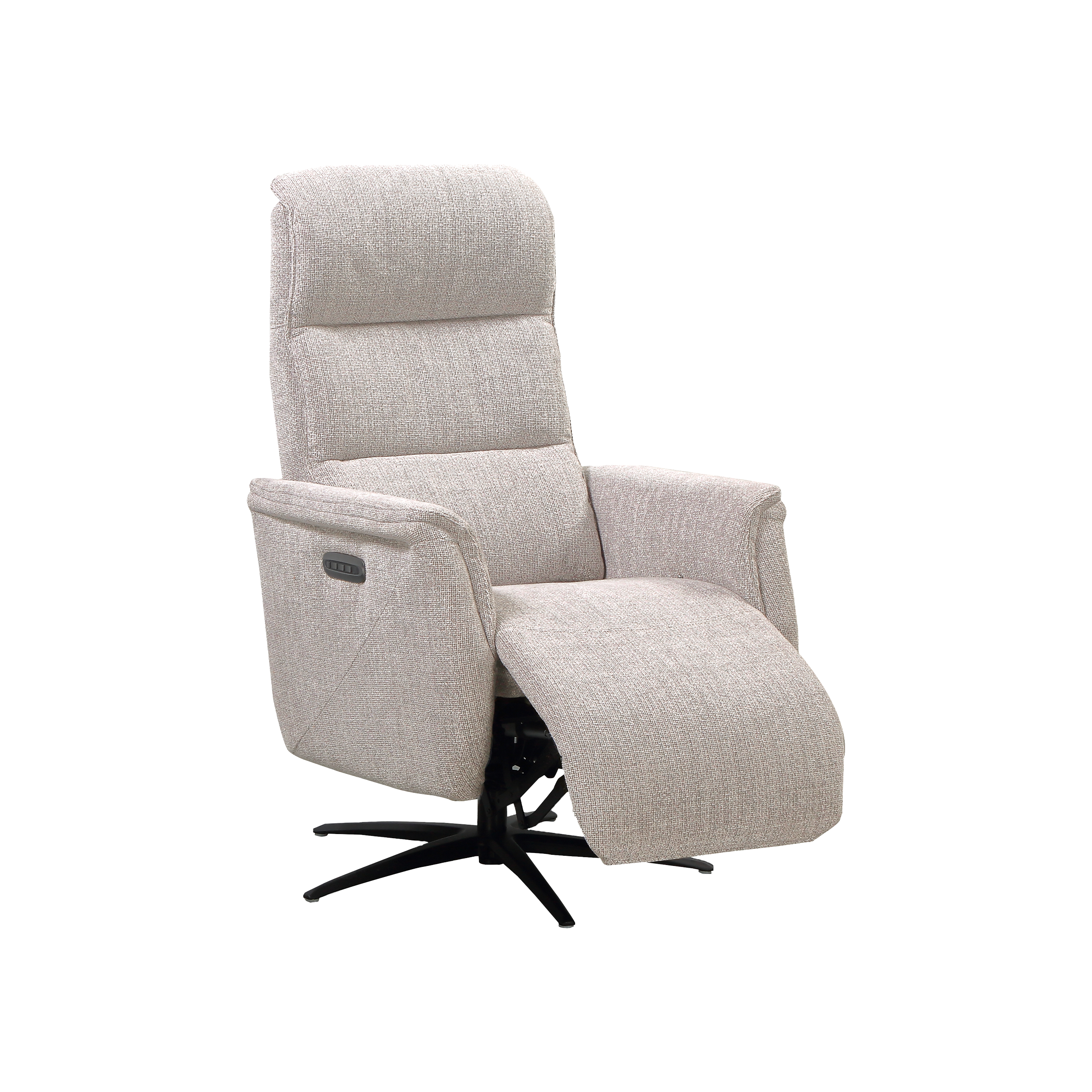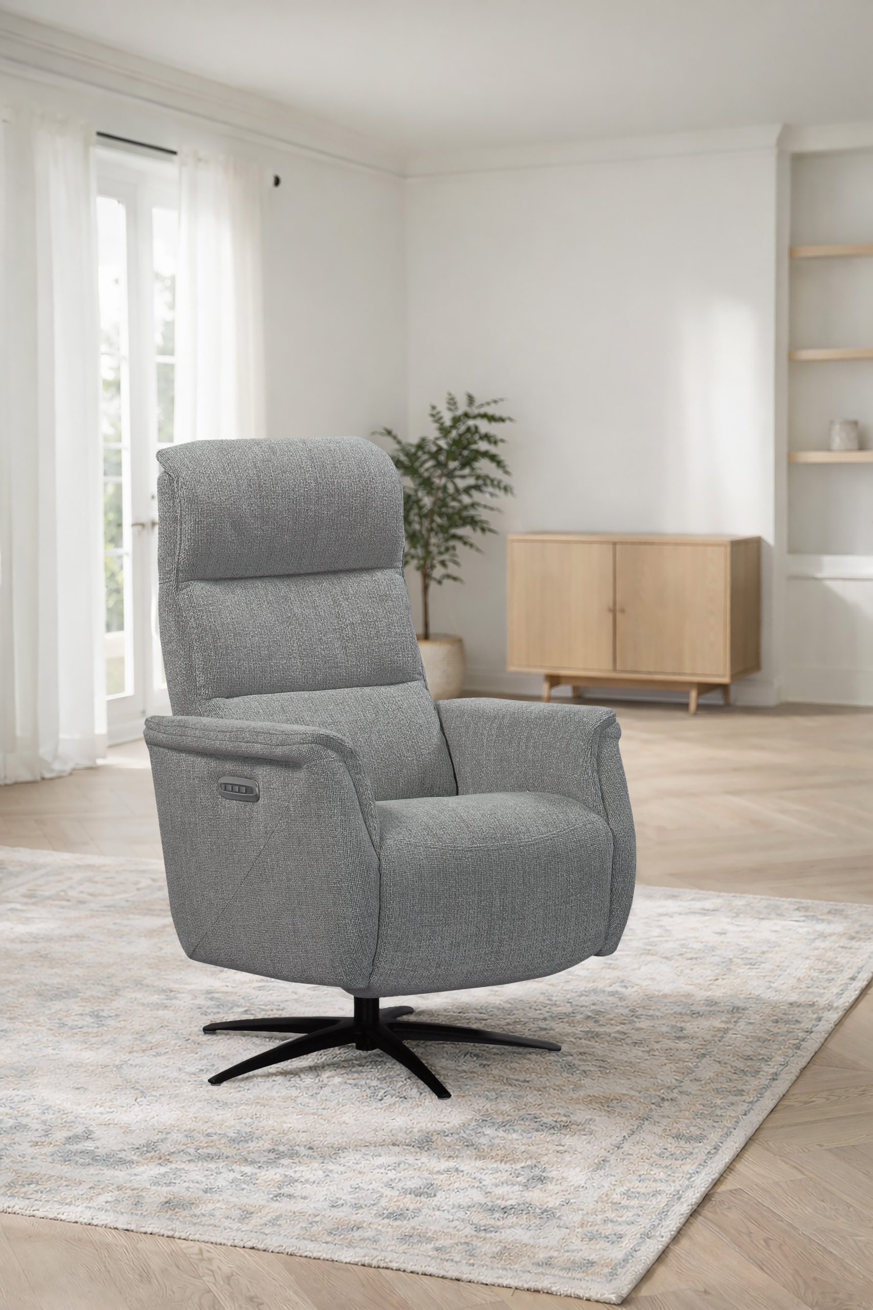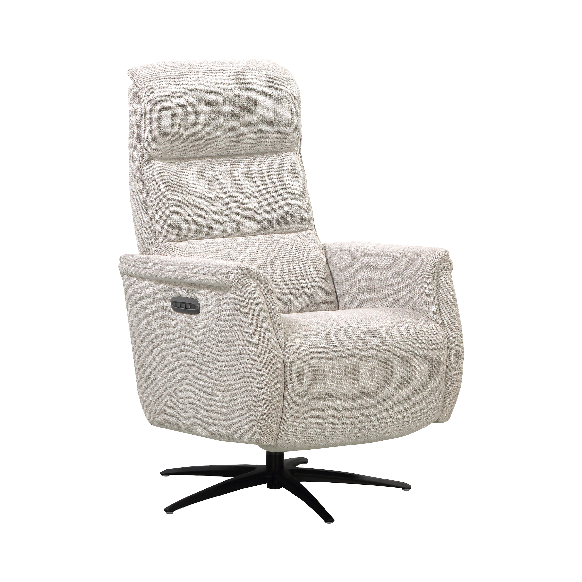 Matériaux nobles et praticité au quotidien L’accueil de l’assise bénéficie d’une mousse polyuréthane Haute Résilience d’une densité de 30 kg/m², soutenue par un système performant de ressorts ensachés posés sur des ressorts No-Zag. Le revêtement exclusif en « Tissu Croisé », composé à 100% de fibres synthétiques de polyester, bénéficie du très strict label OEKO-TEX Standard 100 et garantit une exceptionnelle longévité, validée par un test Martindale à 74 000 tours (norme ISO 12947-1). Pour une installation esthétique au centre de votre salon, une batterie rechargeable de 2000 mAh est disponible en option. De plus, une prise arrière intégrée permet une recharge de cette batterie en toute simplicité, sans avoir besoin de la débrancher du fauteuil.