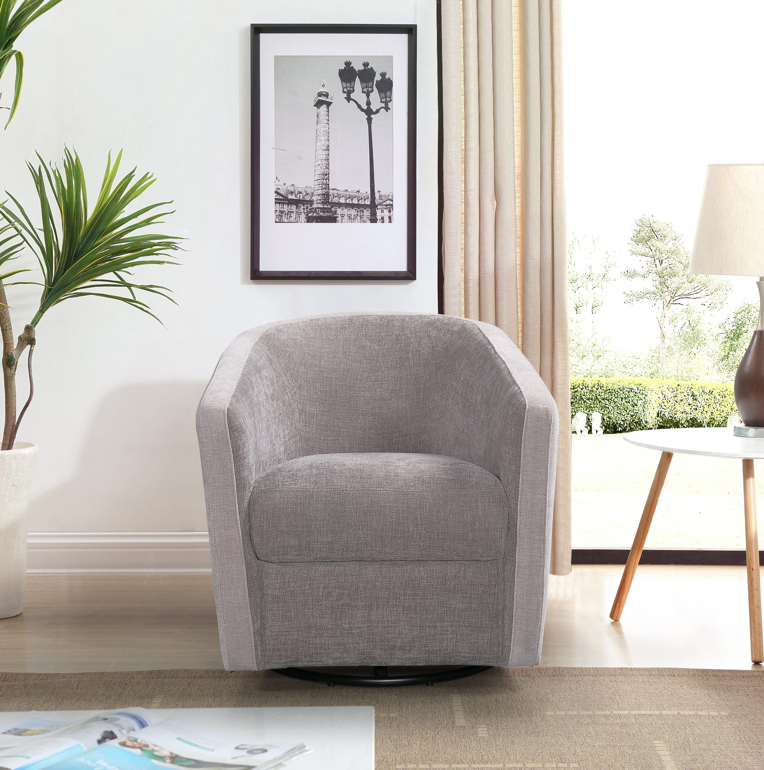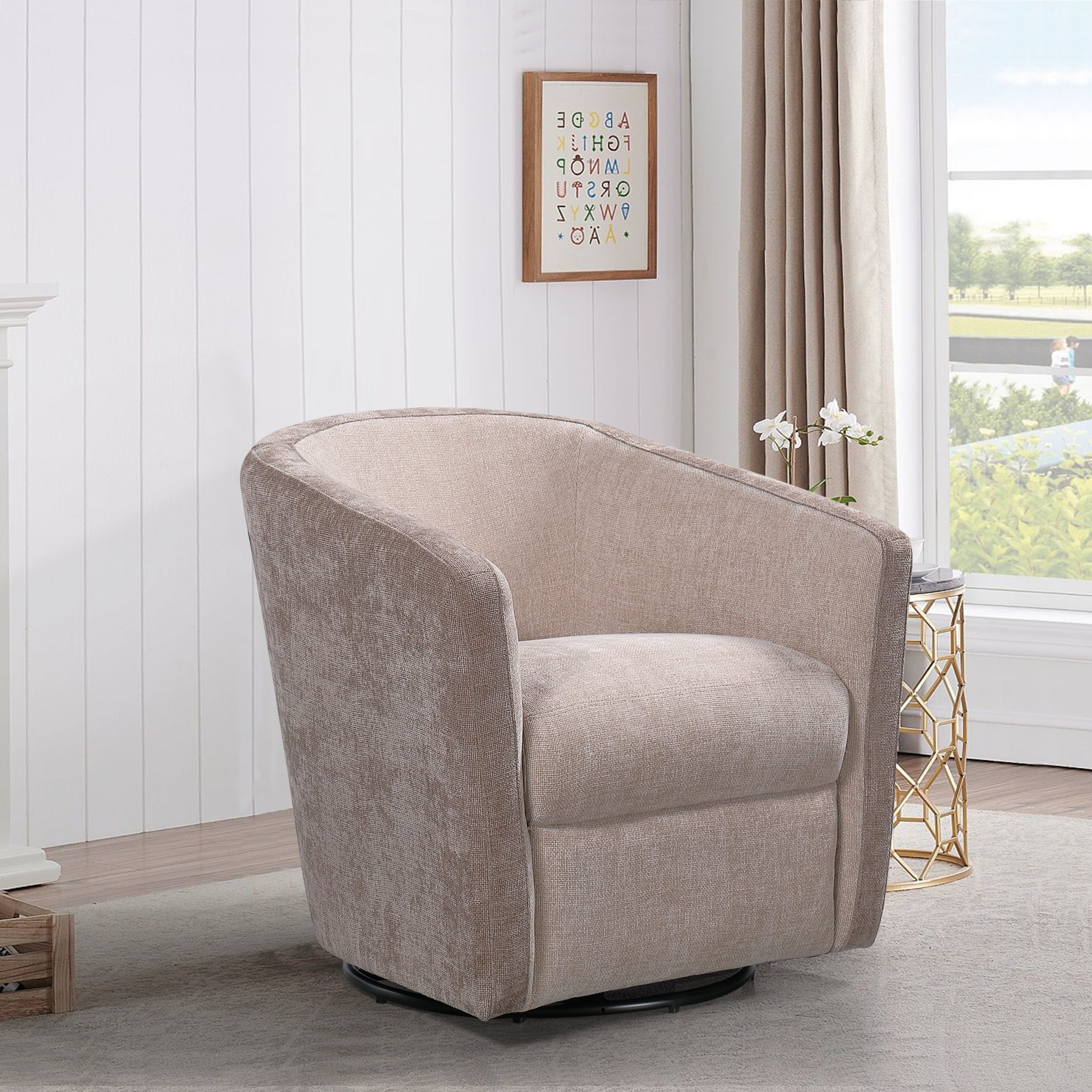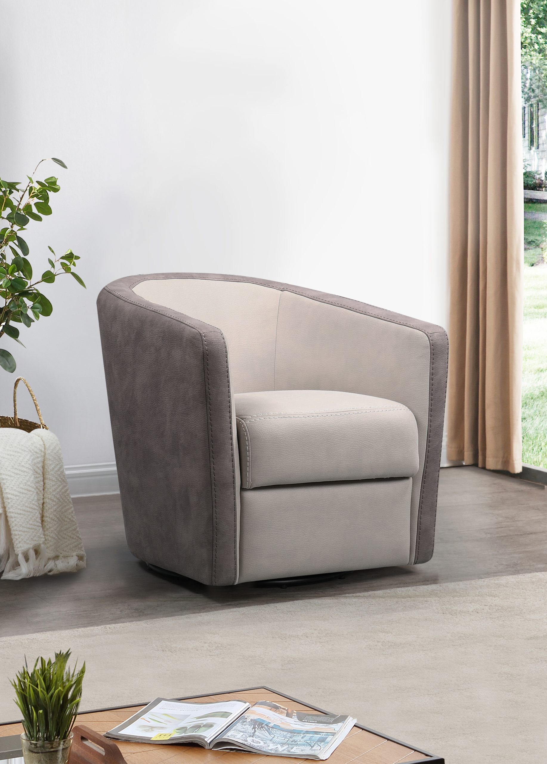 Une ergonomie pensée pour la convivialité L’atout majeur de ce fauteuil réside dans sa base métallique tournante à 360°. Ce mécanisme fluide vous permet de pivoter sans effort pour participer à une conversation, regarder la télévision ou simplement profiter de la vue, vous positionnant toujours au gré de vos envies.
