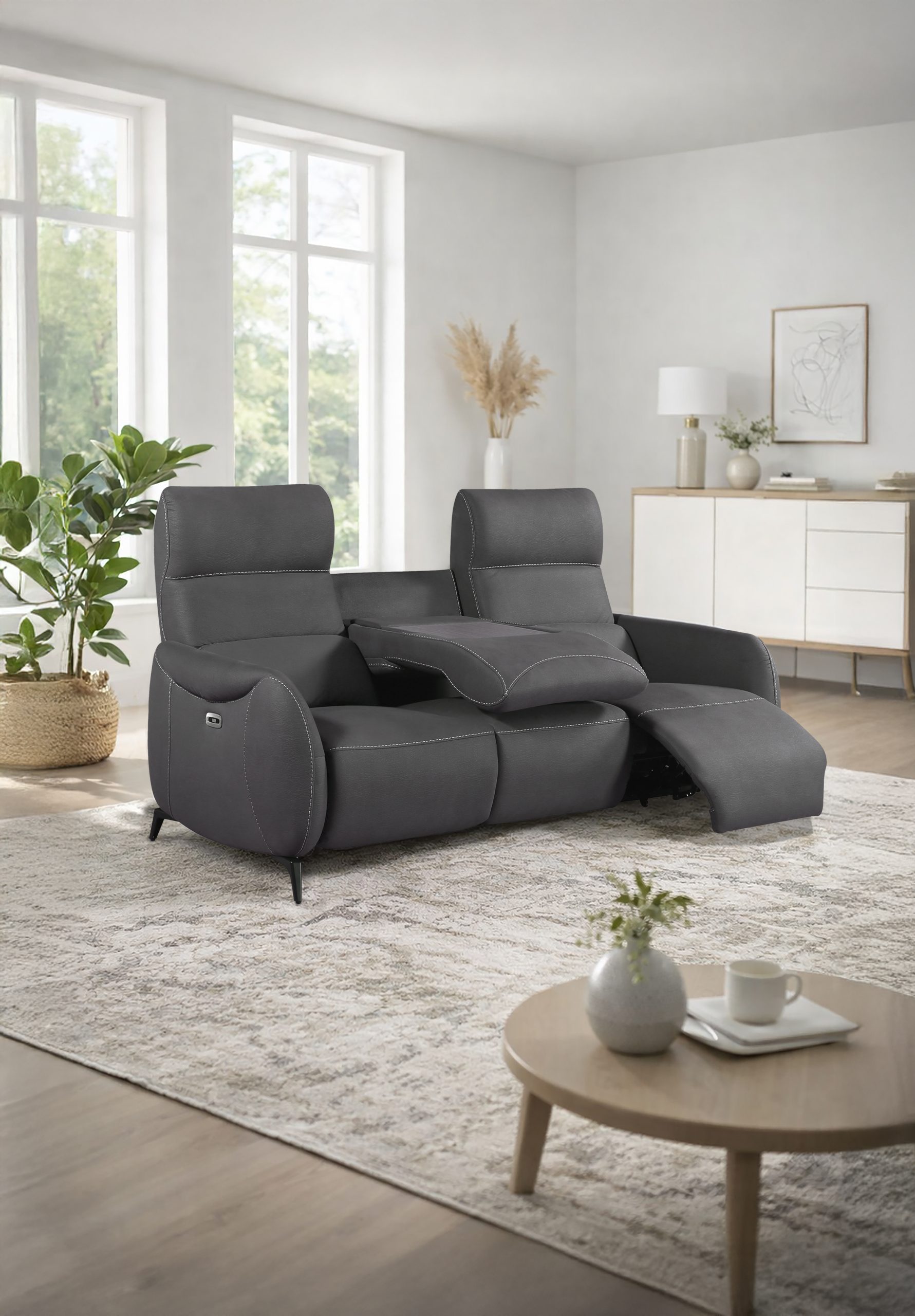 Particularité Canapé 3 places : Intègre une tablette centrale.