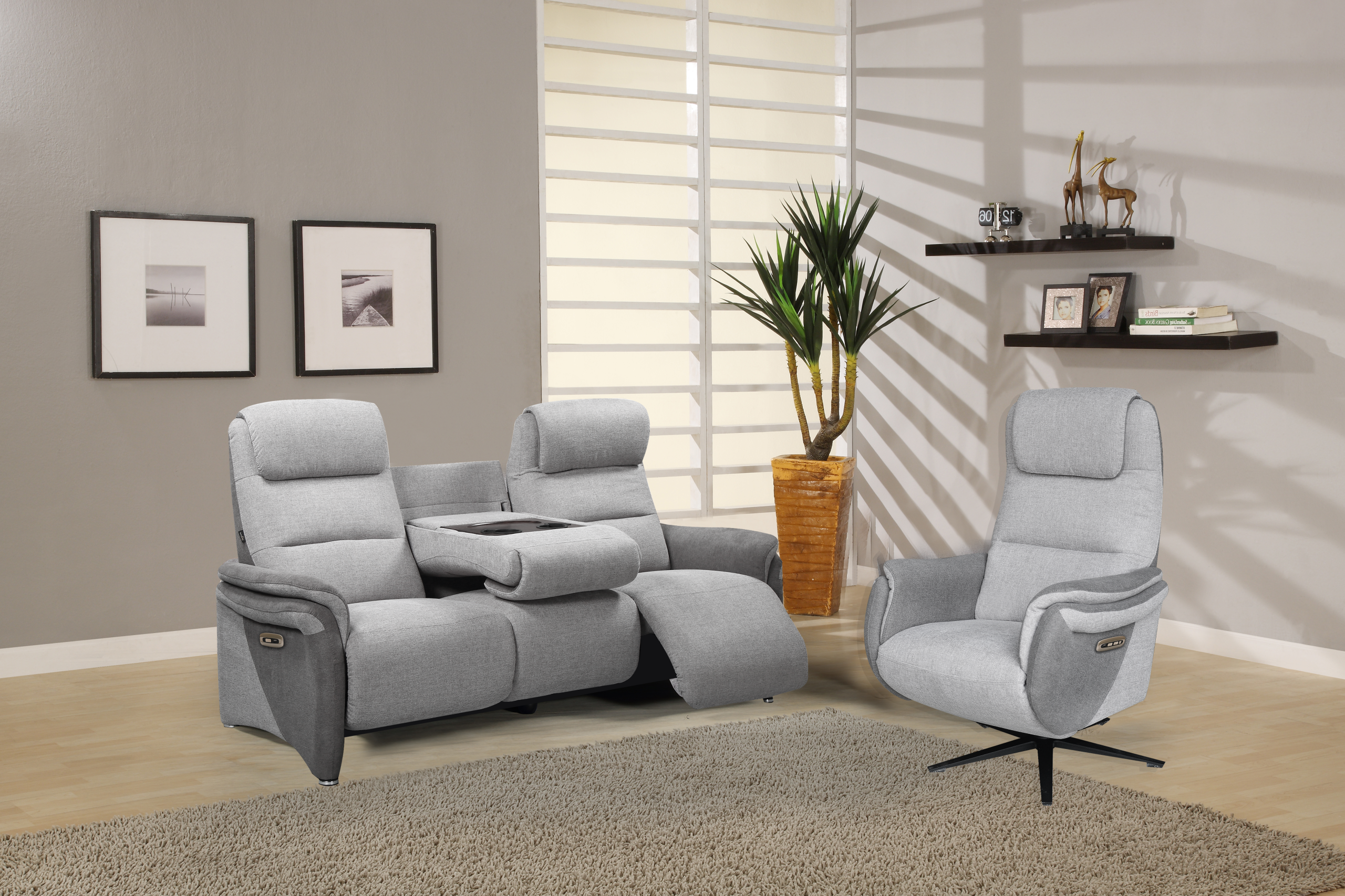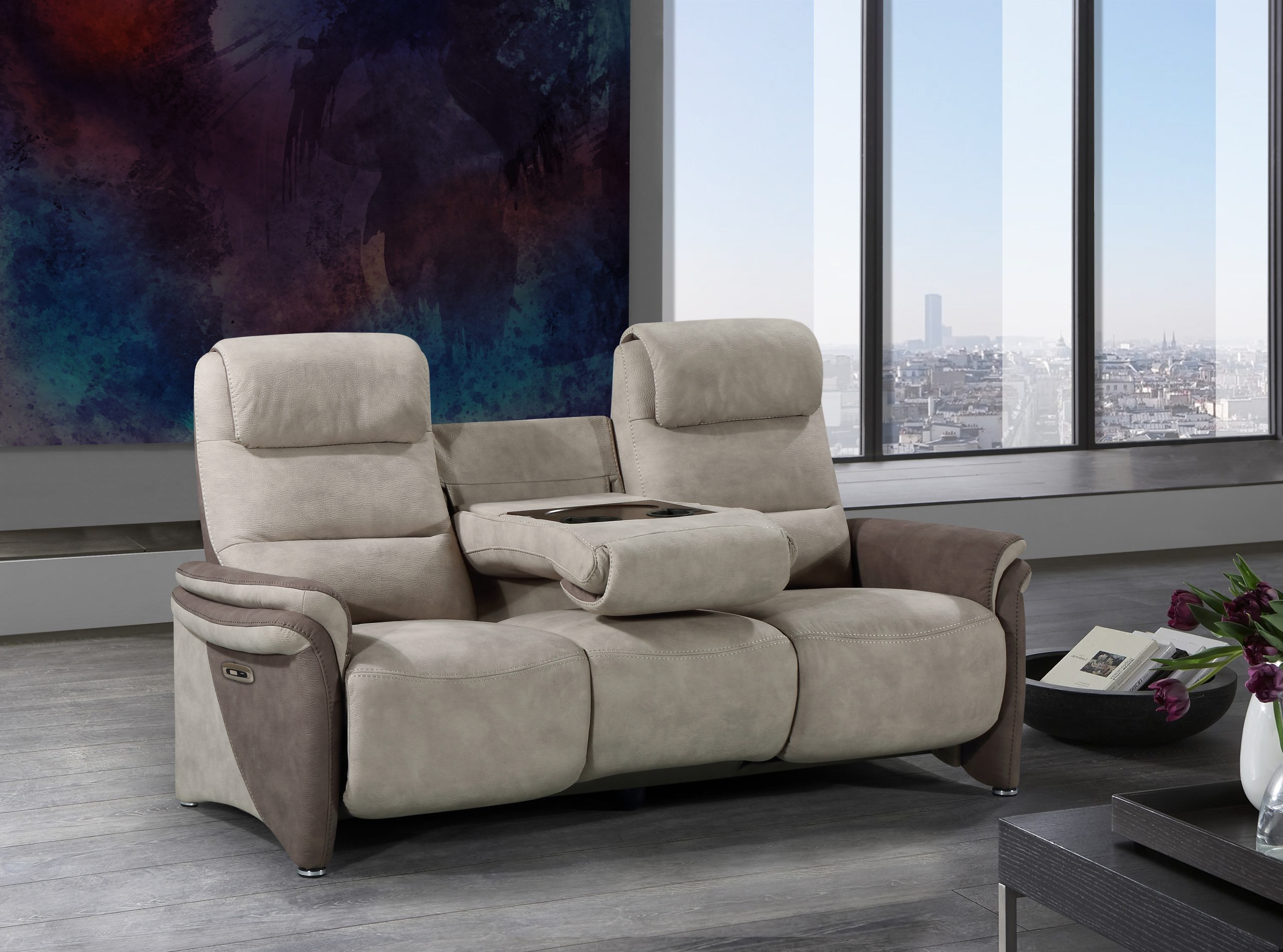 • Particularité Canapé 3 places : Tablette centrale intégrée (disponible sur versions fixe et électrique).